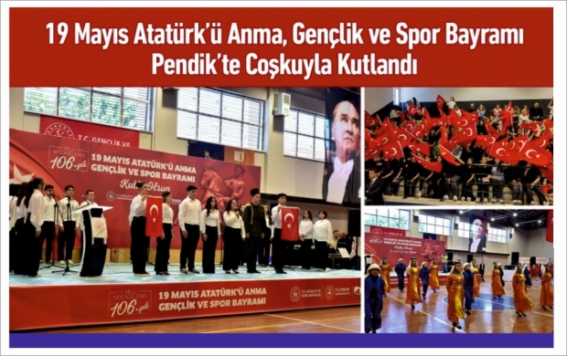 19 Mayıs Atatürk’ü Anma, Gençlik ve Spor Bayramı, Pendik’te düzenlenen törenle büyük bir coşkuyla kutlandı. Kurtköy Spor Salonu’nda gerçekleşen programda şiir dinletileri, oratoryo gösterisi, koro performanslarının yanı sıra folklor gösterileri ve sportif gösteriler sergilendi.