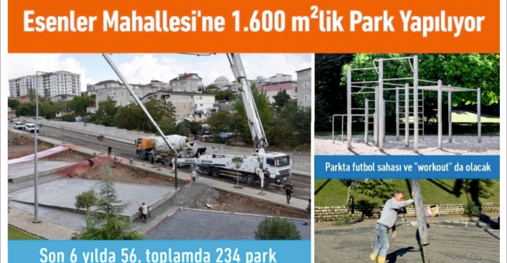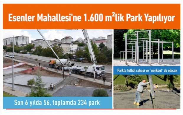 Pendik Belediyesi yeni bir parkın yapımına daha başladı. Esenler Mahallesi Taha Akgül Caddesi üzerinde inşa edilen 1.600 metrekarelik parkta futbol sahası ve workout alanı (çalışma istasyonu) da yer alacak.