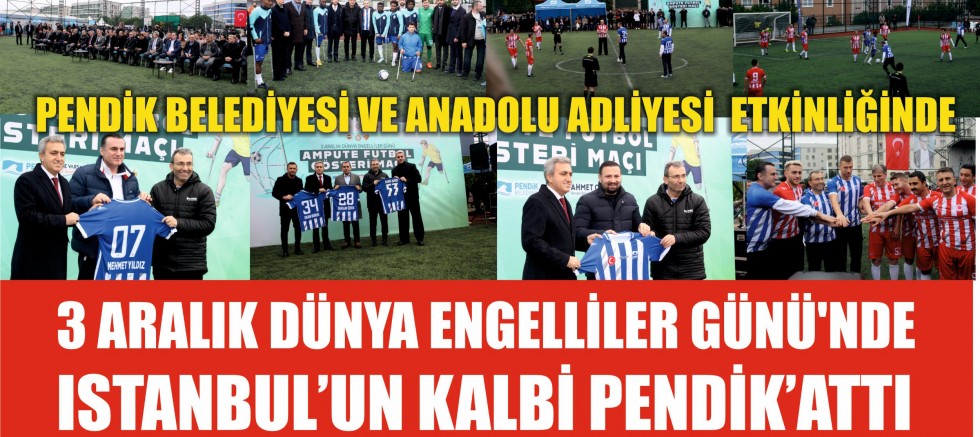 Pendik Belediyesi, 3 Aralık Dünya Engelliler Günü kapsamında anlamlı bir organizasyona ev sahipliği yaptı. İstanbul Anadolu Adalet Sarayı iş birliğiyle bu yıl 4.sü düzenlenen etkinlikte, Pendik Belediye Başkanı Ahmet Cin ve Pendik Kaymakamı Mehmet Yıldız’ın da yer aldığı Pendik Belediyesi Ampute Futbol Takımı ile İstanbul Anadolu Cumhuriyet Başsavcı Vekilleri ile adliyede görev yapan hakim ve savcılardan oluşan karma takım dostluk maçında karşı karşıya geldi.