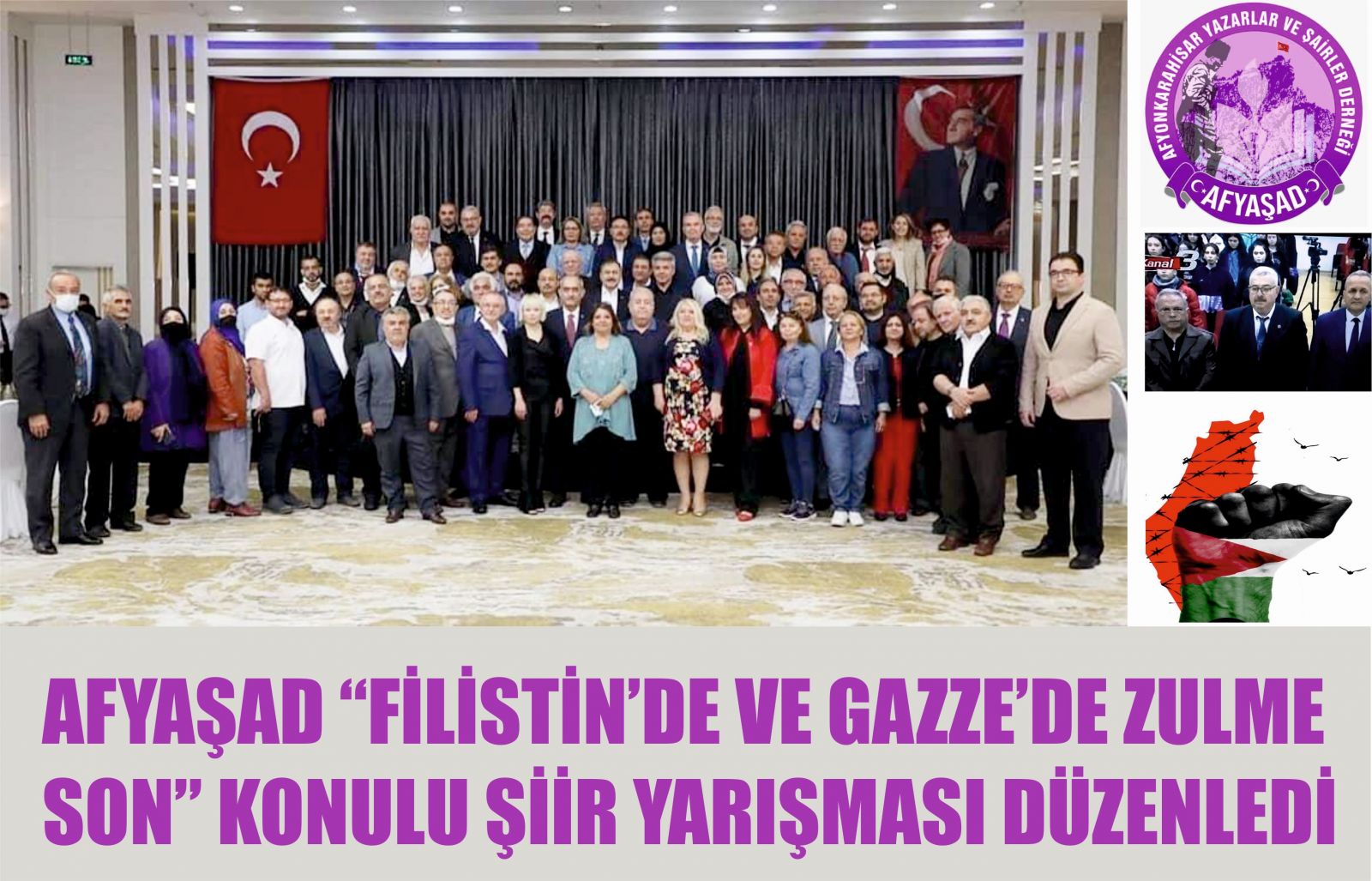 İlimizde en çok kültür programı düzenleyen sivil toplum kuruluşlarının başında yer alan Afyonkarahisar Yazarlar ve Şairler Derneği “AFYAŞAD”; ilimiz genelindeki tüm resmi ve özel ortaokul ve lise öğrencilerinin katılacağı “FİLİSTİN’DE VE GAZZE’DE ZULME SON” konulu şiir   yarışması düzenlendi.
