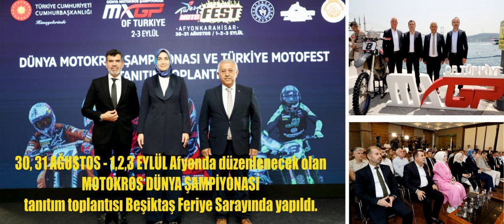 Afyonda düzenlenecek olan MOTOKROS DÜNYA ŞAMPİYONASI tanıtım toplantısı Beşiktaş Feriye Sarayında yapıldı. Afyonkarahisar Valimiz Sayın Doç.Dr Kübra GÜRAN YİĞİTBAŞI Hanımefendinin himayelerinde düzenlenen toplantıya Afyonkarahisar Belediye Başkanımız Sayın Mehmet ZEYBEK İstanbul AFSİAD Başkanımız Sayın Hüseyin ÇELİK, Afyonspor Kulüp Başkanı Sayın Erkan ÇELİK ile birlikte ulusal ve uluslararası bir çok basın mensubu katıldı.