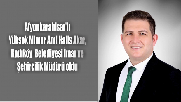 Afyonkarahisar'lı Yüksek Mimar Anıl Halis Akar 31 Mart 2024 yerel seçimlerinden sonra Istanbul Kadıköy Belediyesine İmar ve Şehircilik Müdürü olarak görev yapmaya başladı.