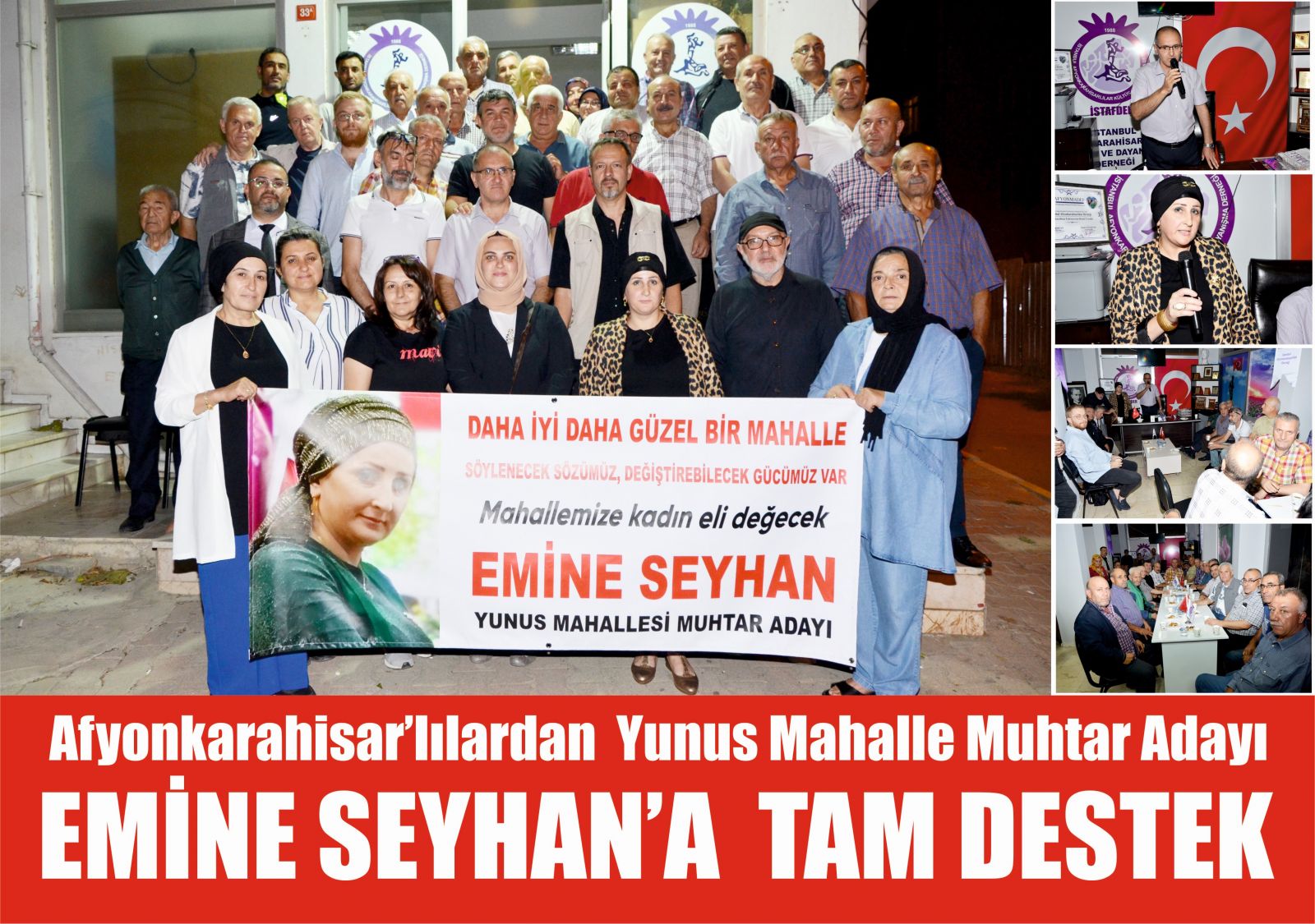 İstafder derneği kadın kolları başkanı ve Kartal Yunus mahalle muhtar adayı Emine Seyhan yaptığı kısa selamlama konuşmasında, Yıllarca İstafder de kadın kolları başkanı olarak İstanbul da yaşayan tüm hemşerilerimize dernek olarak her konuda destek olduklarını ve çeşitli hizmetler verdiklerini söyledi. Emine Seyhan Mart 2024 tarihinde yapılacak olan muhtarlık seçimlerinde Kartal Yunus mahalle muhtar adayı olarak tüm hemşerilerimizin desteklerini beklediğini açıkladı