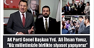 AK Parti Genel Başkan Yardımcısı Ali İhsan Yavuz, "Biz milletimizle birlikte siyaset yapıyoruz, Bu bilinçle hareket ediyoruz. Ben inanıyorum ki çok uzun yıllar Cumhurbaşkanımız Recep Tayyip Erdoğan önderliğinde yeni ufuklara doğru yol almaya devam edeceğiz" dedi.