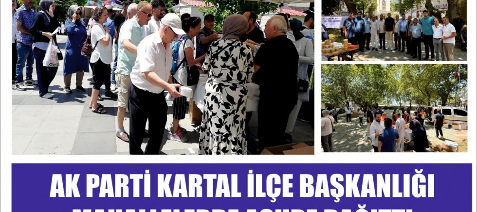 Aşure dağıtımına, AK Parti Kartal İlçe Başkanı Haydar Göksoy, Kadın Kolları Başkanı, Gençlik Kolları Başkanı, Meclis Üyeleri, Mahalle Başkanları ve teşkilat mensupları katıldılar. İlçe teşkilatı olarak  bu kadim geleneği komşularımızla buluşturmanın mutluluğunu yaşadık.