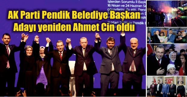 Cumhurbaşkanı Recep Tayyip Erdoğan, 31 Mart 2024 yapılacak mahalli idareler seçimi için AK Parti İstanbul İlçe Belediye Başkan Adaylarını açıkladı. Haliç Kongre Merkezi’nde düzenlenen programda AK Parti’nin Pendik Belediye Başkan Adayı Ahmet Cin olarak belirlendi.