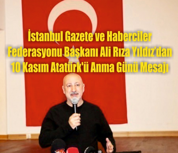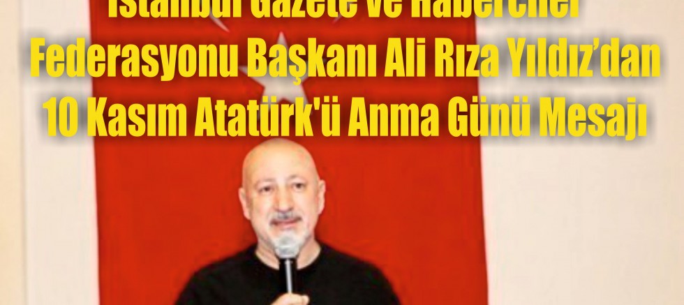 İstanbul Gazete ve Haberciler Federasyonu Başkanı Ali Rıza Yıldız Cumhuriyetimizin kurucusu Gazi Mustafa Kemal Atatürk’ün 85. Ölüm yıldönümü nedeniyle bir mesaj yayınladı.