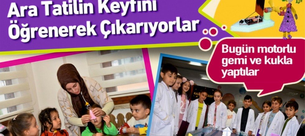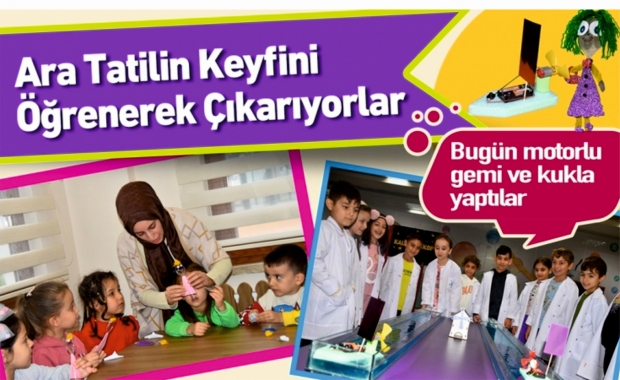 Ara tatil etkinlikleri kapsamında Bilim Merkezleri,Masal Parkı ve Kaynarca Yeni Nesil Yaşam Merkezi Çocuk Kütüphanesine gelen çocuklar, motorlu gemiden kuklaya kadar birçok araç ve gereci üretmeyi öğreniyor.