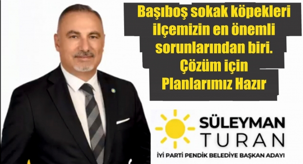 Pendik İYİ Parti Belediye Başkan Adayı Sületman Turan sosyal medya hesabımdan İlçemizde sorun olan başıboş sokak köpekleri ile ilgili yaptığı açıklamayı aynen yayınlıyoruz. Turan "Başıboş sokak köpekleri ilçemizin en önemli sorunlarından biri. Çözüm asla ve asla bu hayvanları toplayıp ücra yerlere bırakmak değil. Belediyeler sokak hayvanlarının sağlıklı yaşam koşullarına sahip yerlerde barınmalarından sorumludur. Başıboş sokak hayvanlarının asıl sebebi, kısırlaştırma ve barınak sorununu çözmeyen belediyelerdir. Bu durumun farkındayız. Seçildiğimizde ivedilikle ön hazırlığını yaptığımız şekilde çözüm için çabalayacağız." dedi.