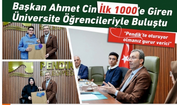 Pendik'te üniversite sınavında ilk 1.000'e giren öğrencilerle bir araya gelerek sohbet eden Belediye Başkanı Ahmet Cin: “Bu buluşma bir gelenek olsun istiyoruz. Çünkü sizlerin Pendik’te oturuyor olması bizim için gurur verici.” şeklinde konuştu.