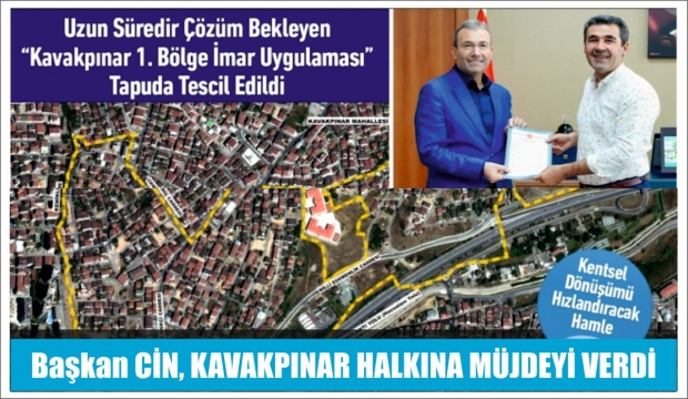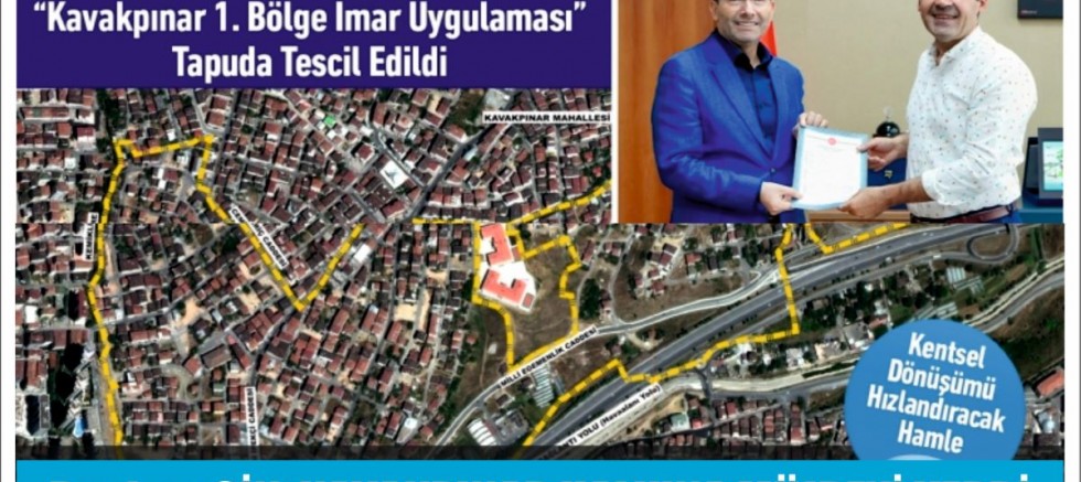 Pendik Belediyesinin uzun zamandır çözüm bekleyen 450 bin metrekarelik alanda yürüttüğü “Kavakpınar 1. Bölge İmar Uygulaması” tamamlanarak tapuda tescil edildi. Belediye Başkanı Ahmet Cin, yapılan çalışmayla bölgenin ihtiyacına yönelik çok sayıda park ve sağlık tesisinin de bulunduğu 30 donatı parseli oluşturduklarını vurgulayarak “Bu parseller; geniş yollarıyla, sosyal alanlarıyla, alt ve üst yapılarıyla şehrimize yakışır, afete dayanıklı yeni yapıların yapılmasını sağlayacak; kentsel dönüşümün önünü açacak. Hayırlı olsun.” dedi.