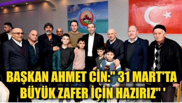 Seçim çalışmaları kapsamında yoğun mesaisini sürdüren Belediye Başkanı Ahmet Cin geçtiğimiz Pazar günü Cumhurbaşkanı Recep Tayyip Erdoğan'ın teşrifiyle gerçekleşen Büyük İstanbul Mitingine giderek “31 Mart'ta büyük zafer için hazırız” dedi.