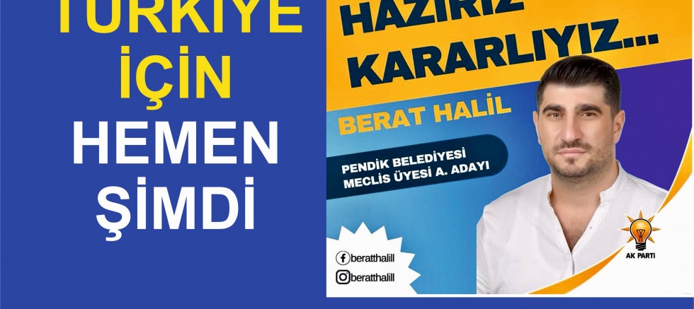 AK Partinin kuruluş yıllarında Pendik Mahalle temsilciliği, Mahalle Başkanlığı Gençlik kollarında görev yapan Berat Halil 31 Mart 2024 tarihinde yapılacak olan yerel seçimlerinde Pendik Belediye Meclis üyeliğini açıkladı.