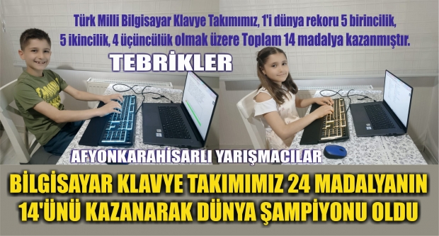 BİLGİSAYAR KLAVYE TAKIMIMIZ 24 MADALYANIN 14’ÜNÜ KAZANARAK DÜNYA ŞAMPİYONU OLDU