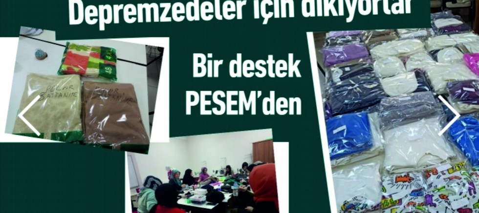 Depremzedeler için dikiyorlar Pendik Belediyesi Sanat ve Mesleki Eğitim Merkezi (PESEM) kursiyerleri bere, battaniye ve pijama takımı gibi ihtiyaç malzemelerini dikerek deprem bölgesine gönderiyor.