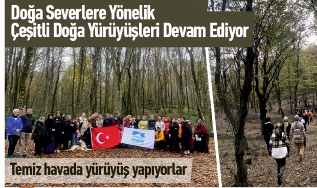 Pendik Belediyesi, doğa severler için düzenlediği doğa yürüyüşlerine devam ediyor. Doğa yürüyüşlerine katılanlar nefes kesen manzaralar ve temiz hava eşliğinde yürüyüş yapıyor.