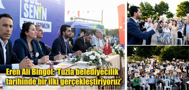 İstanbul Planlama Ajansı’nın (İPA) da destek verdiği buluşmada vatandaş sordu, Tuzla Belediye Başkanı Eren Ali Bingöl tek tek not alıp cevapladı. İBB Başkan Vekili Ülkü Sakalar’ın da katıldığı toplantının açılışında konuşan Bingöl, “Bugün Tuzla belediyecilik tarihinde bir ilk gerçekleştiriyoruz. Tuzla’yı, Tuzlalılarla yönetmek kolay bir söylem ama ötesine taşımak lazım.” dedi.