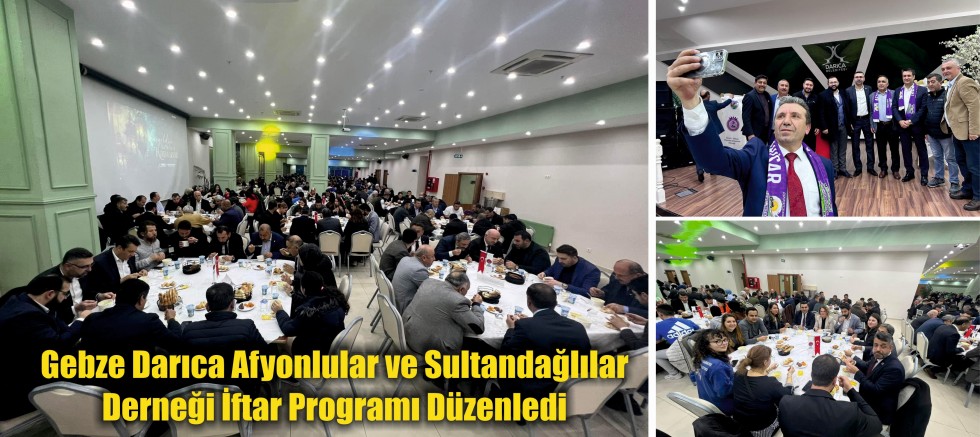Gebze Darıca Afyonlular derneği ve Sultandağlılar Derneği tarafından iftar programında katılanlara kısa bir selamlama konuşması yapan dernek başkanı Cafer Üstü , Ramazan ayının yardımlaşma ve paylaşma ayı olduğunu, bu ayda halkımızın sevgi, hoşgörü içinde yaşamlarını sürdürmelerinin önemine vurgu yaparak derneğin iftarına katılan Ak parti Darıca Belediye Başkan Adayı Muzaffer Bıyık, CHP Darıca Belediye Başkanı adayı Saide Arslan Çalışkan, Saadet Partisi Darıca Belediye Başkan Adayı Selim Çetinkaya, Siyasi parti ilçe başkanları, Federasyon Başkanı Ömür Gülseven, Afyon Spor As başkanı ve AK Parti Pendik ilçe başkan yardımcısı Fatih Gümüş, Milliyetçi hareket partisi önceki dönem ilçe başkanı Ali Tınastepe, Afyonkarahisar Valisi Gökmek Çiçek beyin babası İbrahim Çiçek, Cumhuriyet Başsavcımız İdris Aksoy, Afyonkarahisar Kadın Kolları Başkanı Avukat Beyza Aksoy'a eşine, Gebzede Avukat Seyit Demir, Afyon Kale spor Dernek başkanı Hasan Güven, Yahya Torun abime, Arif Metin başkanıma ve Hemşerim Ekrem Gültekin, Ömer Altunel, Emin Altunel kardeşlerime katılımlarından dolayı çok teşekkür ediyorum dedi..