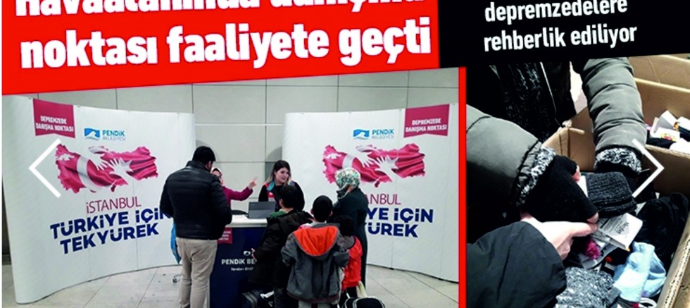 Deprem bölgesinde hizmet ve faaliyetlerine devam eden Pendik Belediyesi, Sabiha Gökçen Havalimanı’nda faaliyete geçirdiği danışma noktasıyla İstanbul'a gelen depremzedelere yardımcı olmaya devam ediyor.