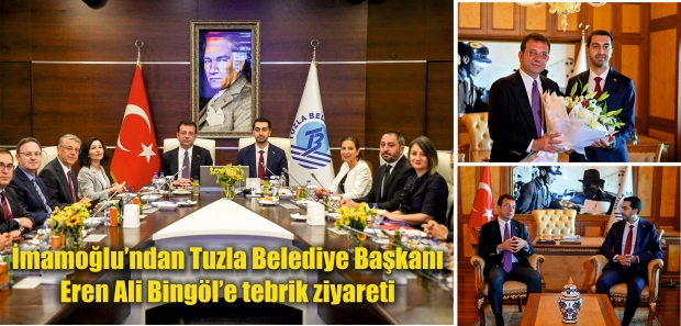 İBB Başkanı Ekrem İmamoğlu, 31 Mart yerel seçimlerinden başarıyla çıkan Tuzla Belediye Başkanı Eren Ali Bingöl’e tebrik ziyaretinde bulundu. Tuzla Belediyesi girişinde alkışlarla karşılanan İmamoğlu, Bingöl tarafından makam odasında ağırlandı. İmamoğlu ve Bingöl, konuşmaların ardından kurum kurmaylarının karşılıklı katılımıyla, Tuzla’nın sorunlarına ve çözüm yollarına dönük, ortak masa toplantısı gerçekleştirdi.