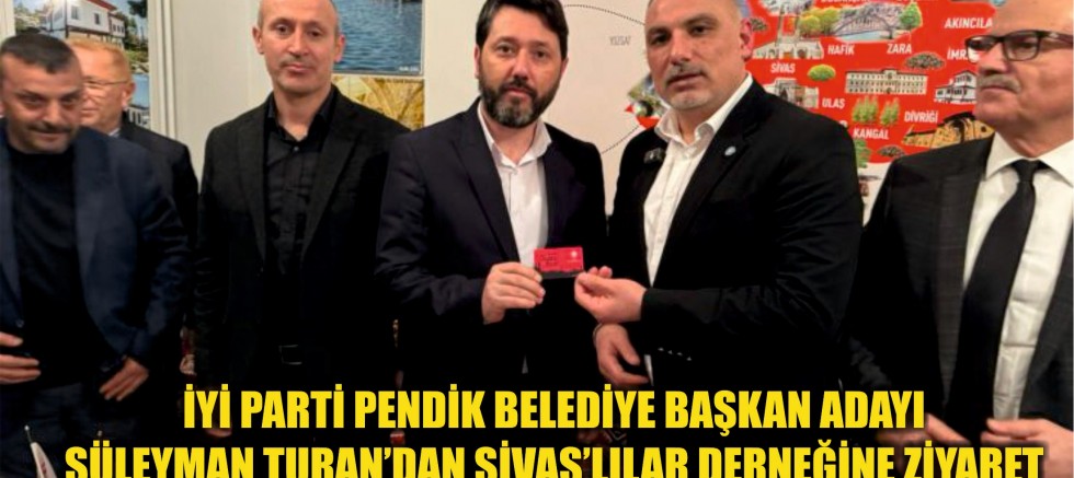 İstanbul Pendik iyi Parti belediye başkan adayı Sayın Süleyman Turan Pendik Sivas’lılar derneğini ziyaret etti. Seçim çalışmalarına hız kesmeden devam eden Turan Pendik’in daha iyi bir ilçe olması için elinden geleni yapacağının sözünü Sivas’lı hemşehrilerine de verdi.