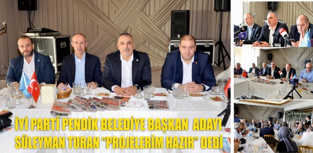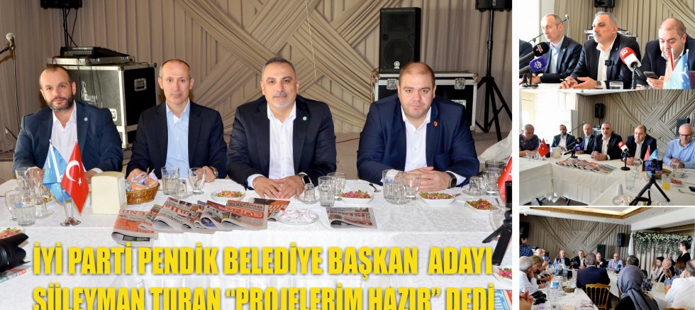 İYİ Parti Pendik İlçe Başkanı Süleyman Turan Ada Tesislerinde basın toplantısı düzenledi. Süleyman Turan toplantıda Pendik Belediye Başkanlığı'na Aday olduğunu, Pendik için projelerinin hazır olduğunu açıkladı.