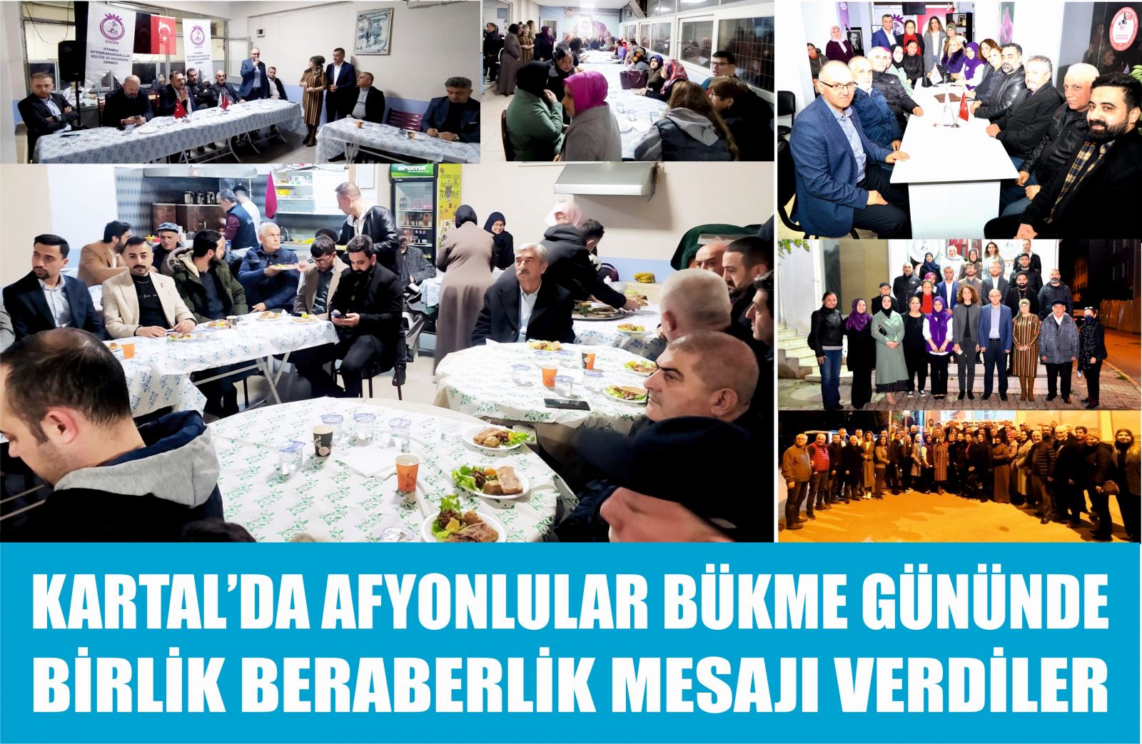 Istanbul Afyonkarahisarlılar Kültür ve Dayanışma Derneği tarafından organize edilen, geleneksel hale getirdiğimiz 03 bükme gününde bizleri yalnız bırakmayan Kartal Belediye meclis üyesi sayın Özlem Bulut a,CHP Kartal ilçe başkanı sayın Mert Polat’a, CHP Kartal gençlik kolları başkanı sayın Uğur Ali söylemez, Kartal belediyesi başkan yardımcısı sayın Yasin Ünder, Kardef başkanı sayın Kubilay Salih Vatandaş, AK Parti Kartal belediye başkan aday adayı sayın Haydar Göksoy ,Kartal belediyesi başkan danışmanı Erdal kıskanç ,Topselvi muhatarı sayın Ahmet Önal, Yalı mahallesi muhtar adayı sayın Zehra Bozkurt,Topselvi mahallesi muhtar adayı sayın Haydar Singur,Tuzla Afyon derneği başkan yardımcısı Nurettin Şahiner,  Yalı,Topselvi siyasi birim başkanları,Ak parti belediye meclis üyesi aday adayı sayın sinem çam ,Bilecikliler gönüllüler dernek başkanı sayın İbrahim Yılman, Doğu ve Güneydoğu dernekler federasyonu kadın kolları başkanı sayın Halime Aslan, Bilecikliler derneği başkanı sayın Mehmet Efe,Tokat Almus Gölbelder derneği  Gökhan güçlü, Tokat dernekler federasyonu kadın kolları başkan yardımcısı  Yasemin Doğan, Eskişehirliler derneği başkanı Orhan Aktepe, AK Parti Altınordu spor kulübü başkanı Hüseyin Erkubilay Son Haber Gazetesinden Halil Topal, Anadolu Kent Haber Gazetesi  imtiyaz sahibi ve kanal 3 muhabiri Halil Güler 2024 yılının ilk bükme gününde bizleri ve derneğimizi katılımları ile onurlandırdılar.