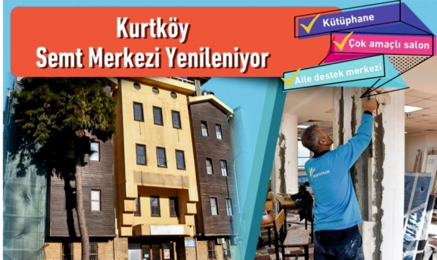 Pendik Belediyesi Kurtköy Semt Merkezi’ni yeniliyor. Yenileme çalışması sonrası kütüphane, aile destek merkezi, eğitim ve danışmanlık biriminin hizmet vereceği binanındış cephesi, çatı bölümü ile içerideki tüm mekanik ve elektrik aksamı yenilenirken bina engelli vatandaşlara uygun hale getiriliyor.