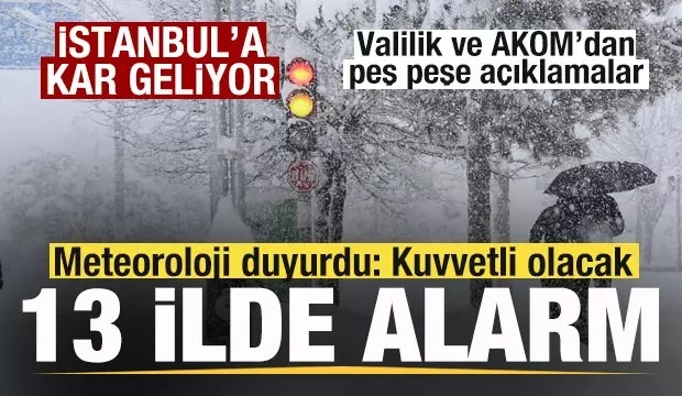 Meteoroloji duyurdu! 13 ilde alarm! AKOM ve Valilikten İstanbul için kar yağışı uyarısı