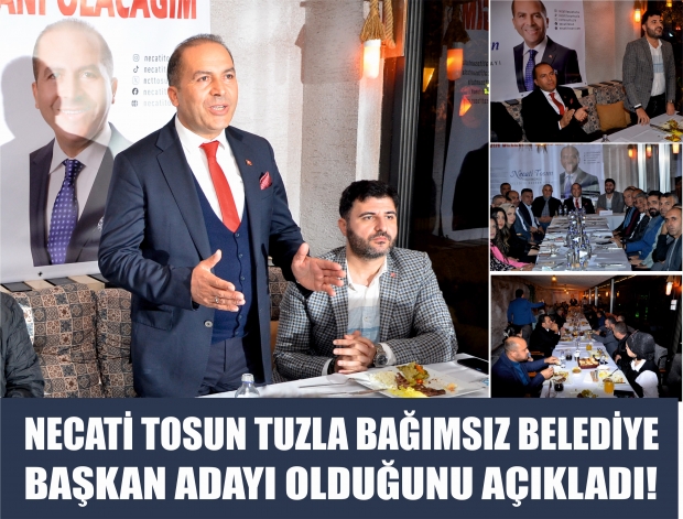 Tuzla'da inşaat sektörünün önde gelen isimlerinden Necati Tosun Tuzla Rönesans restoran da düzenlediği toplantıda 31 Mart 2024 tarihinde yapılacak olan yerel seçimlerde Belediye Başkanı seçimleri için, Tuzla’da Bağımsız Belediye Başkan adayı olduğunu açıkladı.