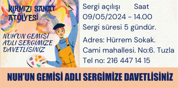 Tuzla’nın önemli bir sanat merkezi olan Kırmızı Sanat Atölyesi, yeni sergisi “Nuh’un Gemisi” ile sanatseverleri buluşturacak. Sergi, 9 Mayıs Perşembe günü kapılarını açacak ve 5 gün boyunca ziyaret edilebilecek.