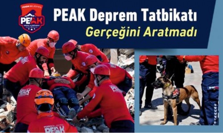 Pendik Belediyesi Arama Kurtarma (PEAK) Ekibi gerçeğini aratmayan bir deprem tatbikatı gerçekleştirdi. Tatbikatta senaryo gereği 7 şiddetinde yıkılan binada kurtarma çalışması yapıldı. Ekibin envanterine yeni kattığı termal dedektör ile arama faaliyeti yapıldı.