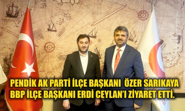 AK Parti Pendik İlçe Başkanı Özer Sarıkaya ve beraberindeki yönetim kurulu üyeleri, BBP (Büyük Birlik Partisi)  İlçe başkanı Erdi Ceylan'ı ilçe merkezinde  ziyaret etti.