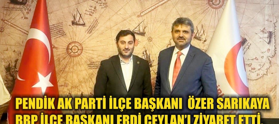 AK Parti Pendik İlçe Başkanı Özer Sarıkaya ve beraberindeki yönetim kurulu üyeleri, BBP (Büyük Birlik Partisi) İlçe başkanı Erdi Ceylan'ı ilçe merkezinde ziyaret etti.