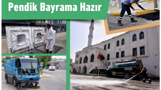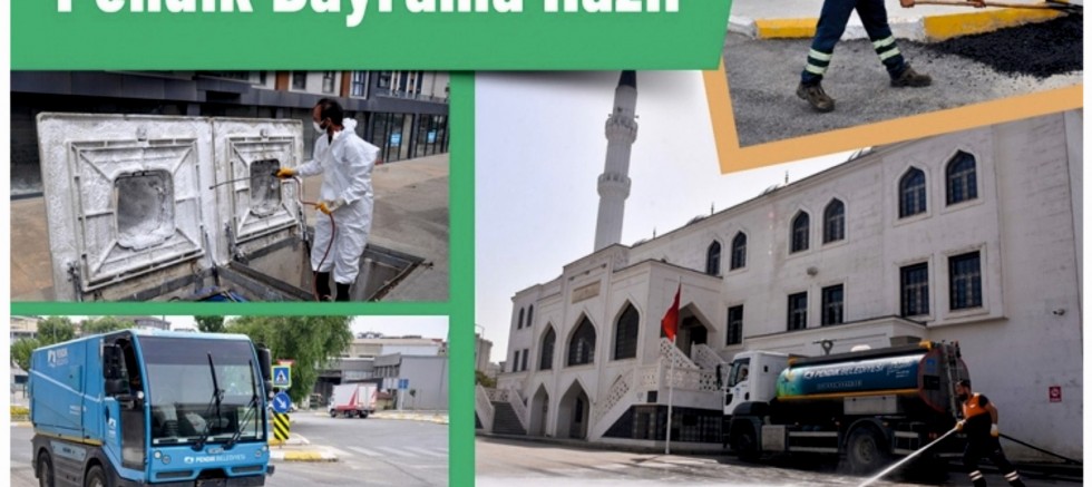 Pendik Belediyesi ekipleri Kurban Bayramı öncesi toplu çalışma programıyla tüm mahallelerde süpürme, temizleme, yıkama, yama, tretuvar boyama ve budama çalışması yaptı. Aynı zamanda ilçe genelindeki camileri dezenfekte edip iç mekanları gül suyuyla yıkayarak bayram namazına hazır hale getirdi.
