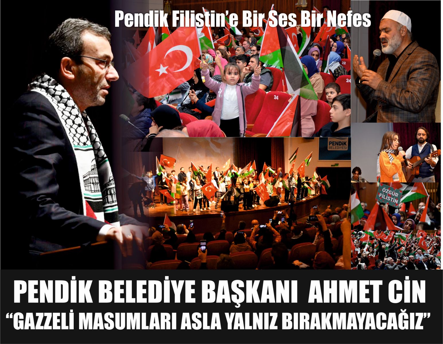 Pendik Belediyesinin Sivil Toplum Kuruluşlarıyla birlikte düzenlediği Filistin Gecesi’nde Gazzeliler için dualar edildi. “Filistin’e bir ses, bir nefes” adlı programda konuşan Pendik Belediye Başkanı Ahmet Cin, “Gazzeli masumları asla yalnız bırakmayacağız!” dedi.
