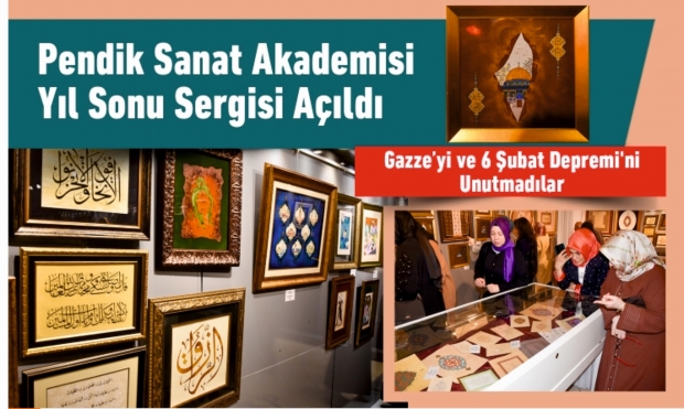 Pendik Belediyesi Sanat Akademisi Yıl Sonu Sergilerinin ilki, M. Akif Ersoy Sanat Merkezi’nde açıldı. Ebru, Minyatür, Tezhip, Çini, Sedef Kakma, Kat-ı ve Hüsn-i Hat’tan oluşan 250’ye yakın eserin yer aldığı sergide Gazze ve 6 Şubat Depremi temalı tezhiplerin olduğu özel bir bölüm de yer alıyor.