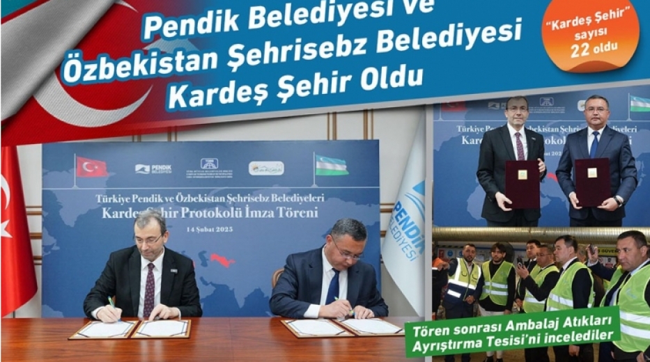 Pendik Belediyesi Özbekistan Şehrisebz Belediyesi ile “Kardeş Şehir” oldu. Kaynarca Yeni Nesil Yaşam Merkezi’ndeki imza töreninde konuşan Belediye Başkanı Ahmet Cin, hayırlı olsun dileklerini sunarak: “Bu protokol inşallah iki ülke halklarını ziyadesiyle memnun etti. Hem ülkemizin kardeşliğine hem de gelişimine katkı sunacak.” dedi. Bu protokolle birlikte Pendik Belediyesinin dünya genelindeki kardeş şehir sayısı 22 oldu.
