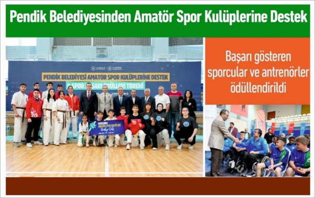 Pendik Belediyesi, ilçedeki amatör spor kulüplerine yönelik geleneksel spor malzemesi ve nakdi destek dağıtım törenini Şehit Burhan Öner Spor Kompleksi’nde gerçekleştirdi. Törende, spor kulüplerine malzeme ve nakdi desteğin yanı sıra ulusal ve uluslararası arenada başarı gösteren sporcular ile antrenörler de ödüllendirildi. Törende konuşan Pendik Belediye Başkanı Ahmet Cin: “Biz her zaman gençliğin yanında olmaya gayret ediyoruz. Sporun yanında olmaya gayret ediyoruz.” diyerek amatör spora olan desteğin süreceğini belirtti.