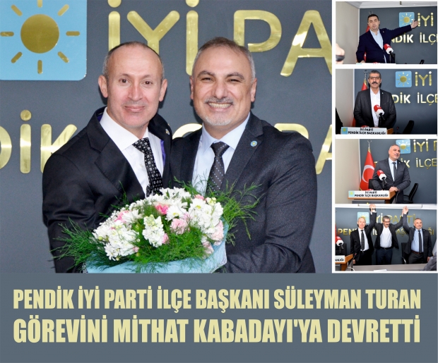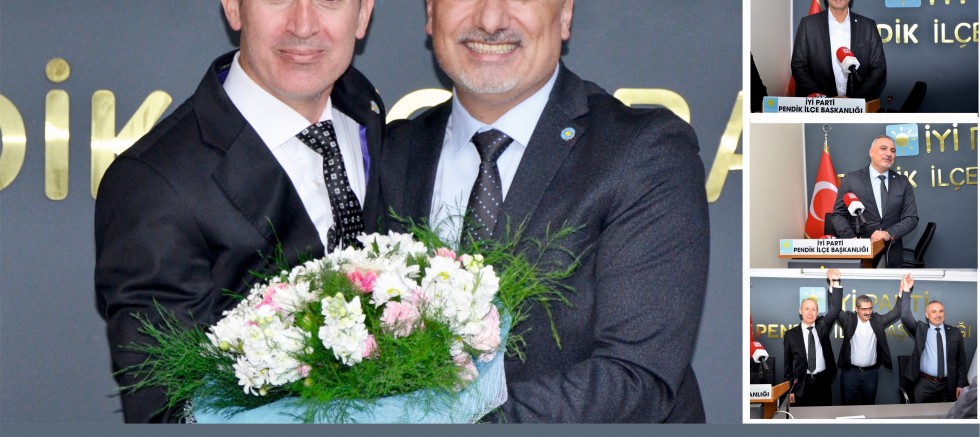 Pendik İyi Parti İlçe Başkanı Süleyman Turan’ın Belediye başkan adayı olması nedeniyle ilçe başkanlığı görevini ilçe merkezinde düzenlenen törenle Mithat Kabadayı’ya devretti.