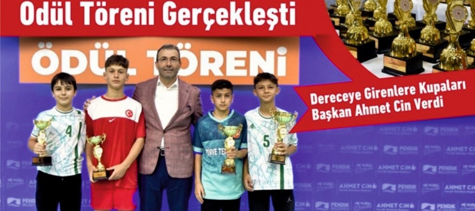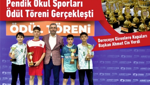 Pendik Okul Sporları Ödül Töreni, Kurtköy Spor Salonu’nda gerçekleştirildi. Masa tenisi ve futsal branşında dereceye girenlere kupaları veren Belediye Başkanı Ahmet Cin: “Başarı gösteren tüm kardeşlerimi tebrik ediyorum. Pendik Belediyesi olarak spor faaliyetlerinde etkin bir şekilde yer almanız için altyapı ve spor noktasında büyük efor sarf ediyoruz.” dedi.