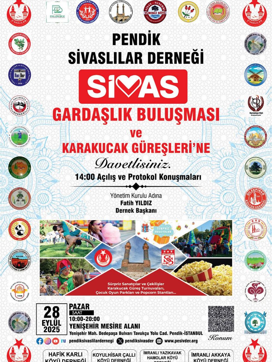 Pendik Sivaslılar Derneği, 28 Eylül 2025 Pazar günü büyük bir etkinliğe ev sahipliği yapacak. “Sivas Gardaşlık Buluşması ve Karakucak Güreşleri” adıyla düzenlenecek program, Pendik Yenişehir Mesire Alanı’nda gerçekleştirilecek