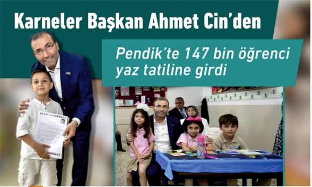 Pendik Belediye Başkanı Ahmet Cin Mustafa Karuşağı İlkokulu’ndaki karne dağıtım törenine katılarak  öğrencilerin karne  sevincini paylaştı. Törende konuşan Başkan Ahmet Cin velilere “Belediyemizin kültürel, sportif alanlarda kursları var. Çocuklarımızı buralara gönderebilirsiniz” dedi. Öğrencilere ise erken yaşta okumanın önemine dikkat çekerek “Tabii ki tatil yapacaksınız ancak; bu yaşta öğrenilecek bilgiler sünger gibi çekilir. Okumayı ihmal etmeyin” tavsiyesinde bulundu.