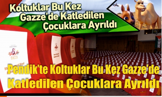 Pendik Belediyesi Yunus Emre Kültür ve Sanat Merkezi’nin koltuklarını bu kez Gazze’de katledilen çocuklara ayırdı. Koltuklara, İsrail’in şehit ettiği çocukların isimleri asıldı. Daha sonra boş salonda konusu Kudüs’te geçen “Tay” isimli çizgi filmin gösterimi gerçekleştirildi.