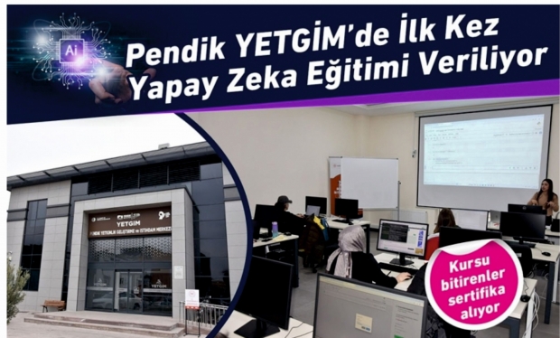 Pendik Yetkinlik Geliştirme ve İstihdam Merkezi (YETGİM) Projesi’nde ilk kez yapay zeka eğitimi başladı. Alanında uzman eğitimciler tarafından verilen eğitim sonunda katılımcılara sertifika verilecek.