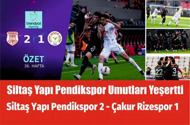 Pendikspor, Trendyol Süper Lig'in 36'ncı haftasında Rizespor ile karşı karşıya geldi. Müsabaka Pendik Stadı'nda oynandı. Mücadelede Atilla Karaoğlan düdük çaldı. Pendikspor, Rizespor karşısında sahadan 2-1 galip ayrıldı.