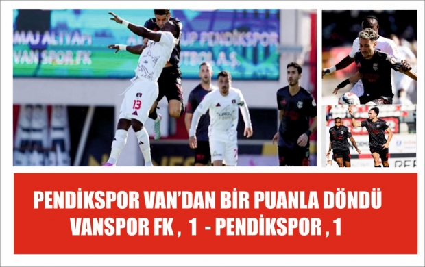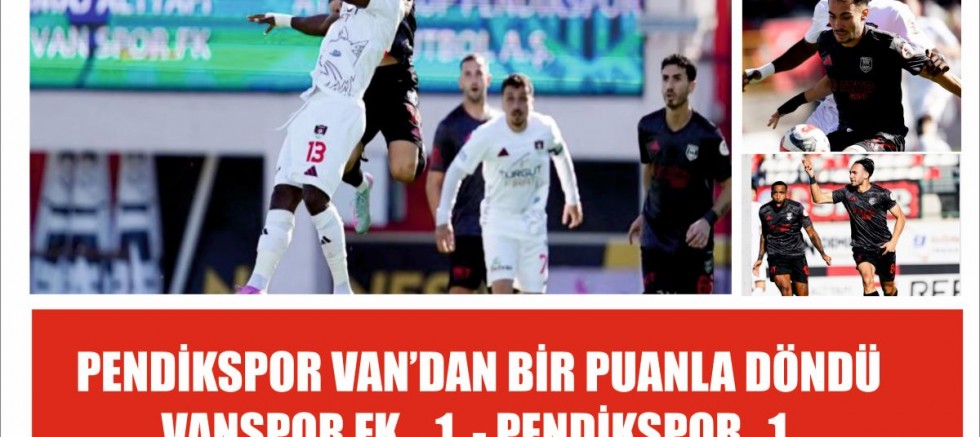 Trendyol 1. Lig'in 10. haftasında Vanspor FK, sahasında Pendikspor ile 1-1 berabere kaldı. Atatürk Stadı'nda oynanan karşılaşmada Vanspor FK'nın golünü 37. dakikada Ivan Cedric kaydederken, Pendikspor 85. dakikada Yiğit Fidan ile eşitliği yakaladı.