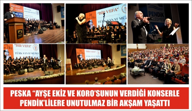 Pendik’in kültürel hayatına değer katan PESKA, bu kez Türk Sanat Müziği’nin dev ismi Ayşe Ekiz ve muhteşem korosuyla Pendiklileri buluşturdu. "Bir Vefa" ismiyle düzenlenen konser, salonu hıncahınç dolduran müzikseverlerden tam not aldı.