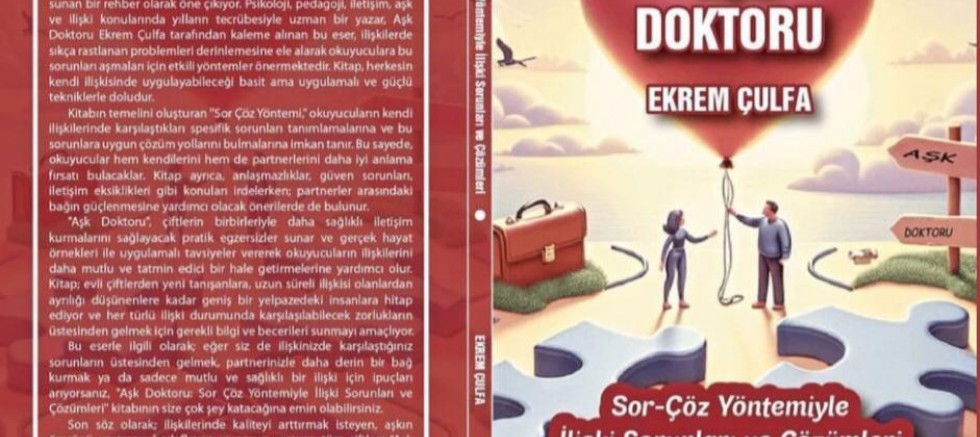 “Prof. Dr. Ekrem Çulfa tarafından kaleme alınan "Aşk Doktoru: Sor-Çöz Yöntemiyle İlişki Sorunları ve Çözümleri" kitabı, ilişkilerde karşılaşılan sorunlara pratik ve yenilikçi çözümler sunan bir rehber olarak öne çıkıyor.