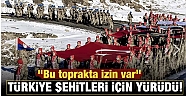 Ellerinde Türk bayrakları bulunan binlerce kişi, burada Kur'an-ı Kerim okuyup tekbir ve salavatlar getirerek şehitler için dua ettikten sonra soğuk havada Ay-Yıldızlı Tören Alanı'na doğru yürüyüşe geçti.
